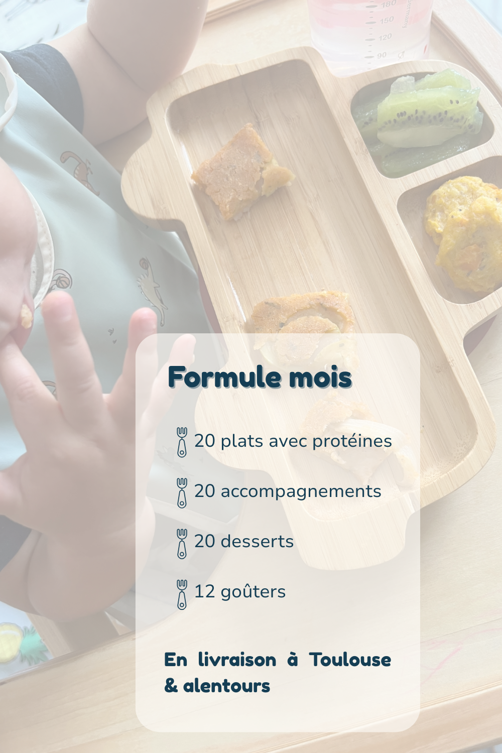 Un mois entier de sérénité : 20 déjeuners complets + 12 goûters maison, pour régaler votre enfant et alléger votre quotidien.
